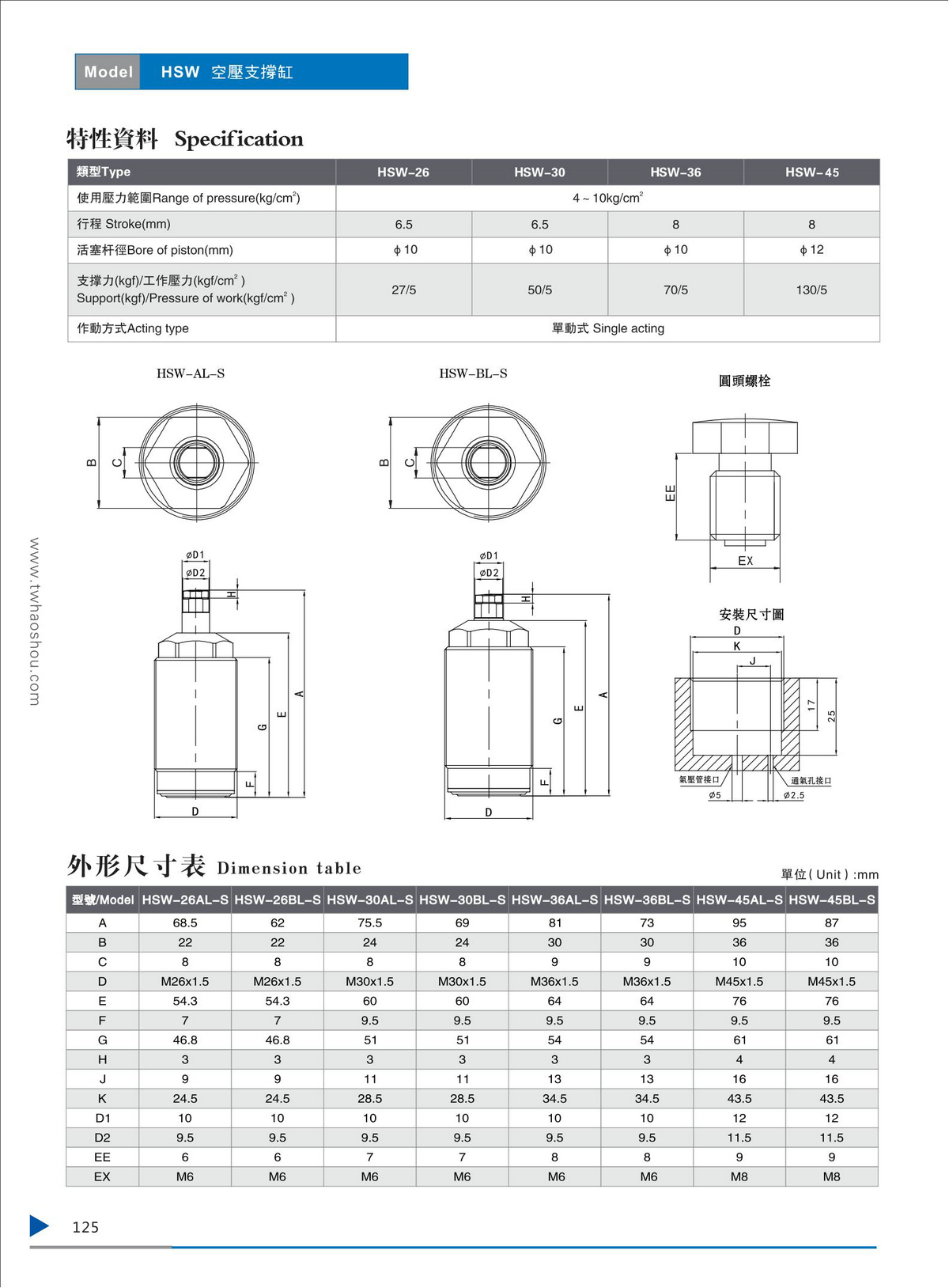 HSW空压支撑缸