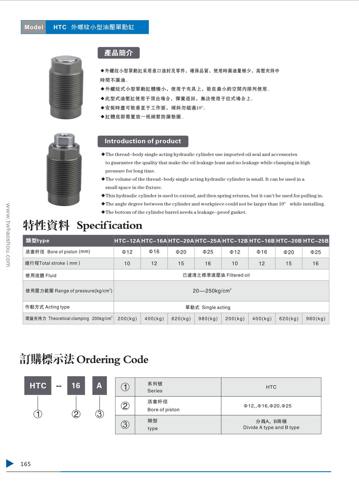 HTC外螺纹小型油压单动缸
