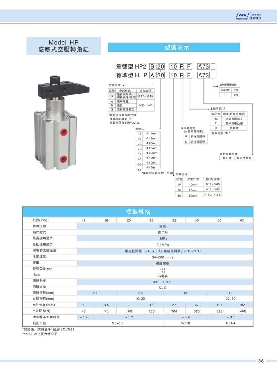 > HP感应式空压转角缸