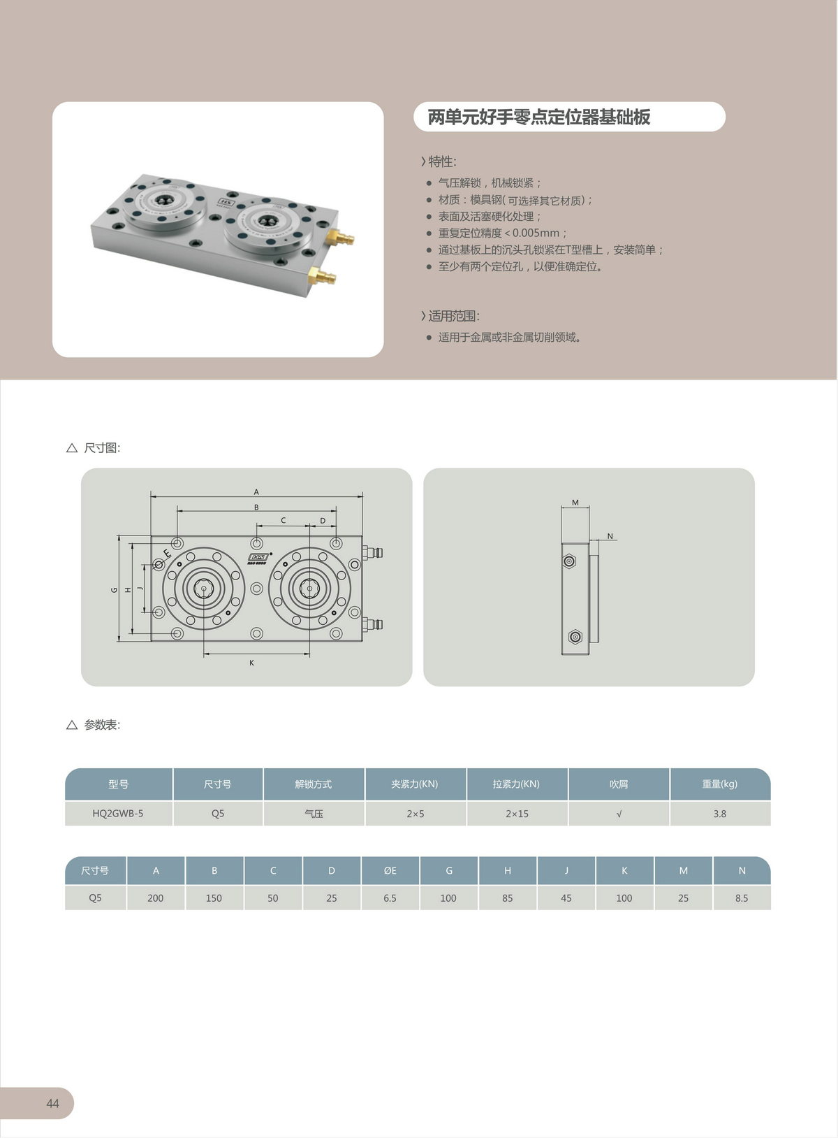HQ2GWB两单元好手零点定位器基础板