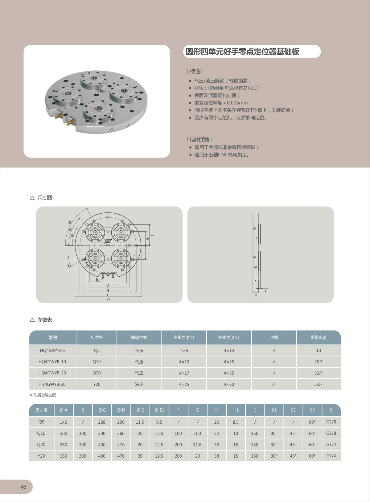 HQ4GWYB圆形四单元零点定位器基础板