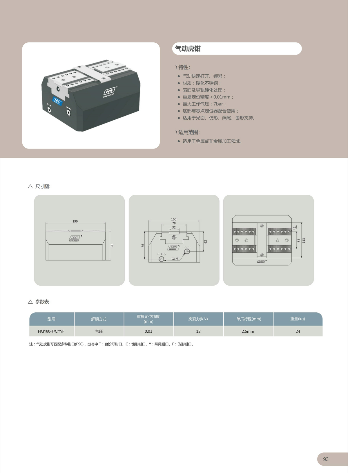 > HQ160-T/C/Y/F气动虎钳